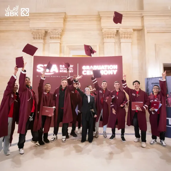ويأتي هذا الاحتفال في إطار اتفاقية التعاون المشترك الموقعة بين البنك الأهلي الكويتي - مصر وأكاديمية السويدي الفنية، حيث يلتزم الطرفين بدعم التعليم الفني باعتباره أحد أهم ركائز التنمية المستدامة والتطور الاقتصادي، بالإضافة إلى تقديم نموذج تعليمي متكامل يجمع بين الدراسة النظرية والتدريب العملي وفقاً لأحدث المعايير العالمية.