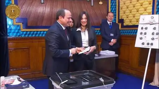 وزيرة التجارة والصناعة تدلى بصوتها بانتخابات مجلس النواب بكلية الفنون الجميلة